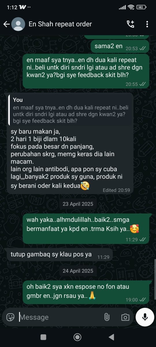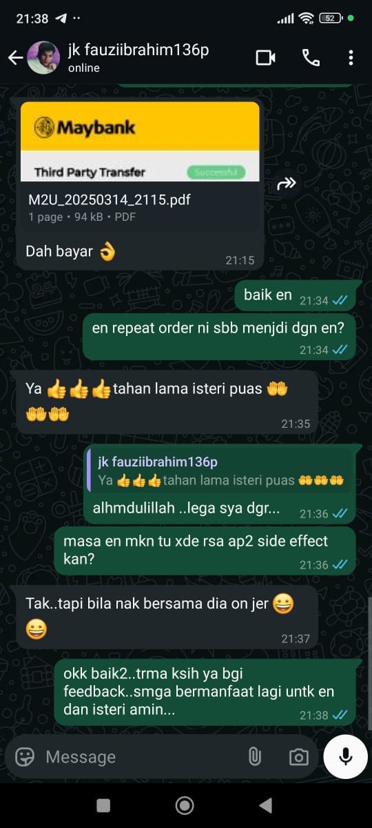 Selama Kanda jual Jamu Kanda sebulan sekali pun sudah nak dapat complain. Namun jika tak berkesan selama 3 bulan, Kanda akan beri money back guaranteed dengan syarat beli pakej 3 pack dan habiskan selama 3 bulan. Untuk lebih detail sila tekan ”money back guarantee” di bawah. Jangan risau sahabat … Kanda tau hukum hakam. Niat Kanda nak tolong orang seramai mungkin rasa nikmat sebenar berumah tangga